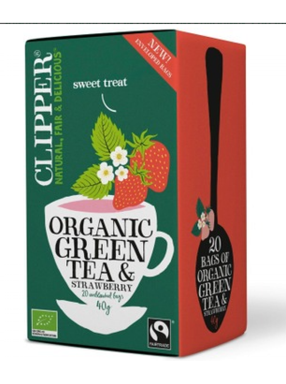 Органический зеленый чай со вкусом клубники Clipper Mansikan 40г/ 20шт