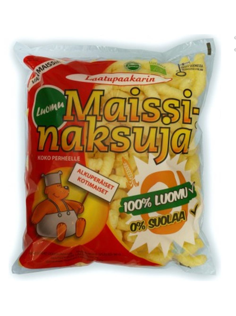 Органические кукурузные чипсы Laatupaakarin Luomu Maissinaksuja 90 г без глютена и без лактозы