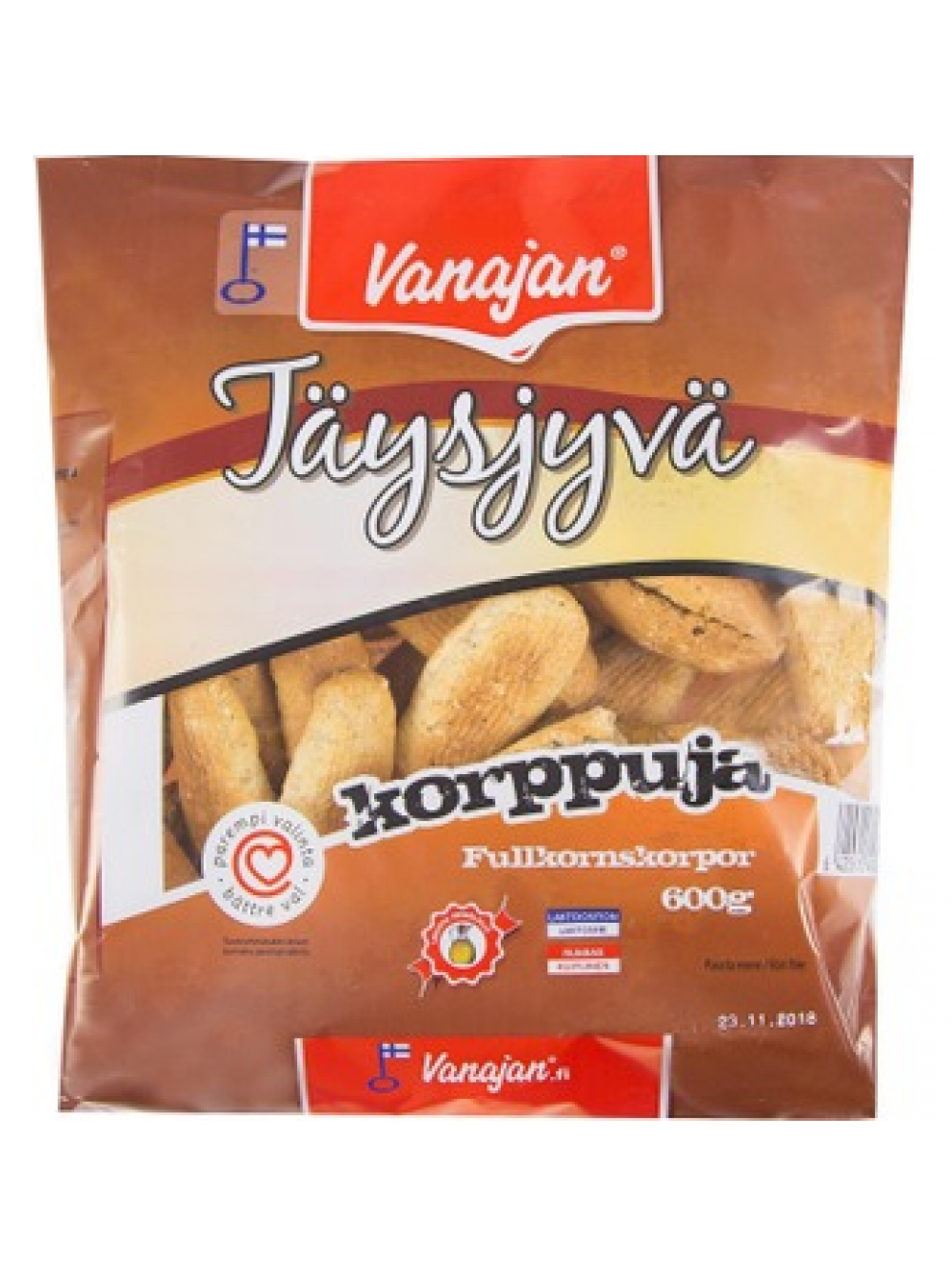 Мини сухарики цельнозерновые Vanajan Täysjyväkorppu 600г