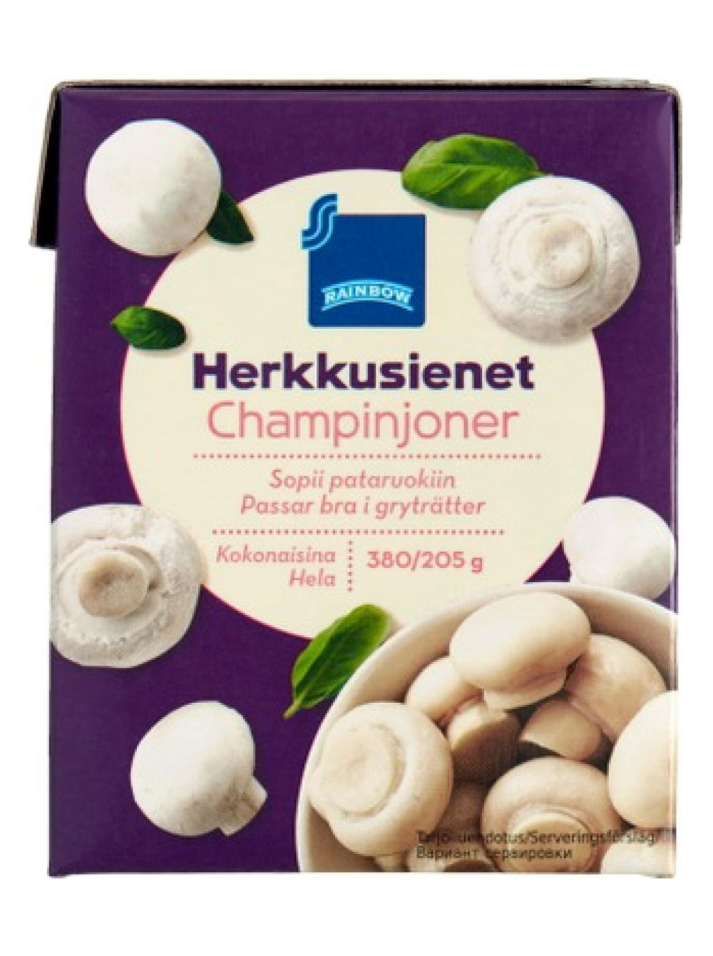 Грибы целые в рассоле Rainbow Herkkusieniä 380/205г