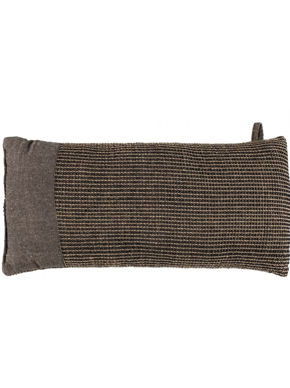 Коричневая изогнутая подушка Kenno для сауны с односторонней окантовкой из шамбре для поддержки головы и шеи на скамейках в сауне. Текстиль для сауны Kenno из переработанного хлопка отличается мягкостью и живой текстурой ткани. Наполнен быстросохнущей ватой.