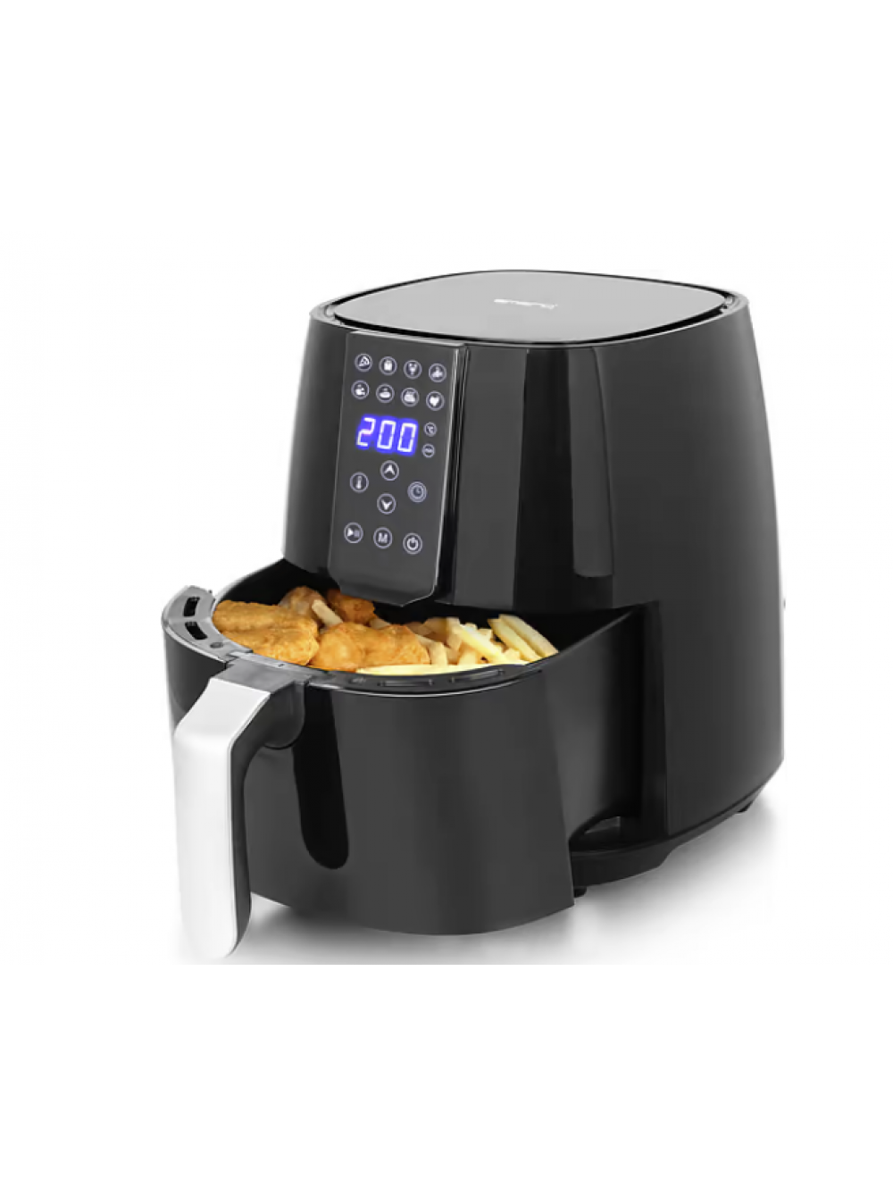С циркуляционной фритюрницей Emerio AF-125323 Smart Fryer вы сможете легко и быстро приготовить нежирную пищу! Используя лишь небольшое количество масла, вы готовите продукты во фритюре в циркулирующем воздухе, чтобы получить хрустящую и нежирную пищу. Благодаря цифровому дисплею прибор прост в использовании, и вы можете точно отрегулировать желаемую температуру. Поверхность рециркуляционного воздухонагревателя нагревается во время использования и остается на месте благодаря нескользящим ножкам. Корзинную часть нагревателя рециркуляционного воздуха можно стирать в машине, что облегчает очистку после использования.