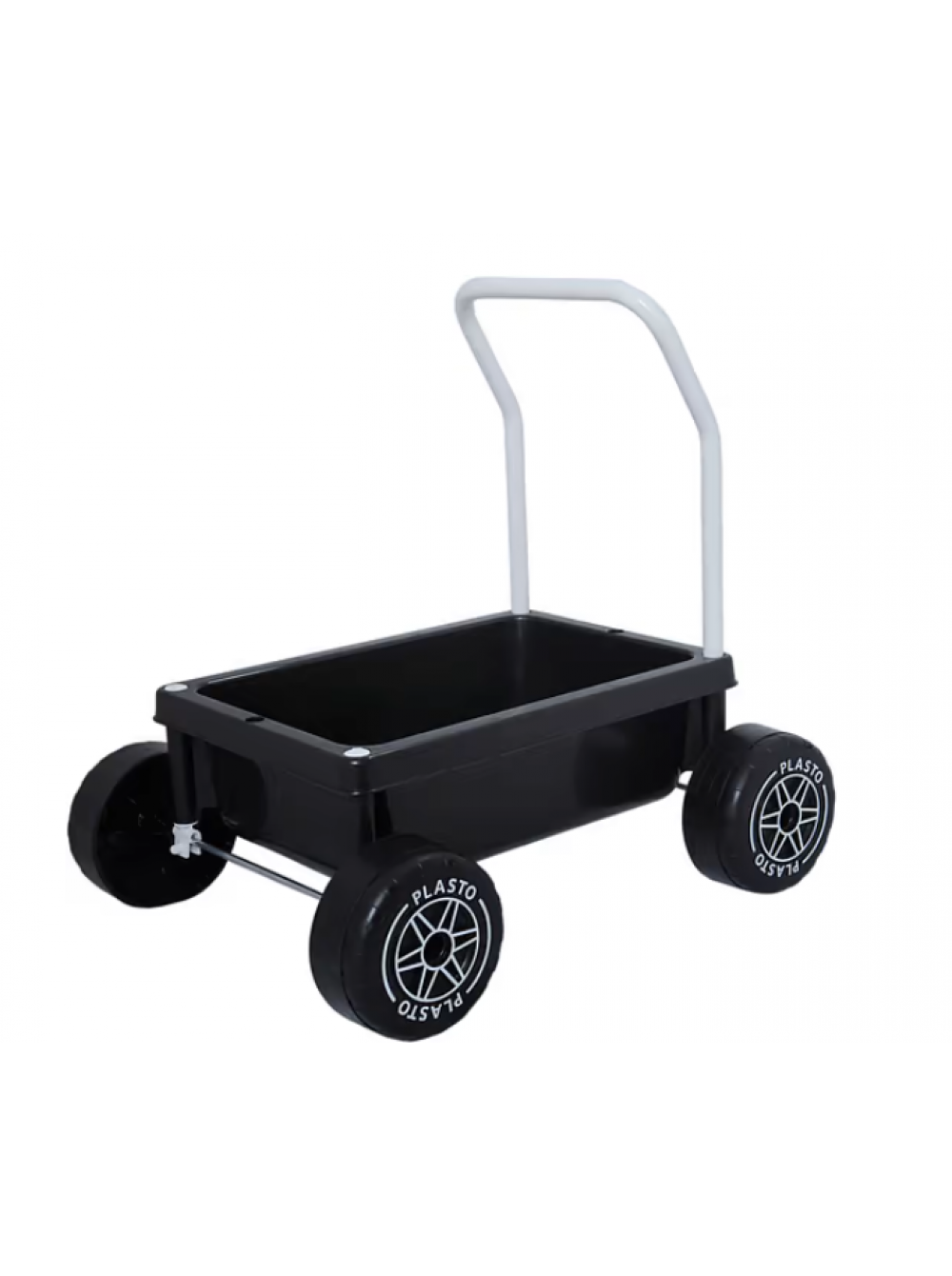 Безопасная и прочная тележка для тех, кто делает первые шаги. Детская тележка Plasto оснащена удобным тормозом, позволяющим регулировать скорость движения коляски. Большие, мягкие и тихие шины облегчают передвижение как на улице, так и в помещении. Высота толкателя тележки 48 см. Рекомендуемый возраст: старше 1 года.