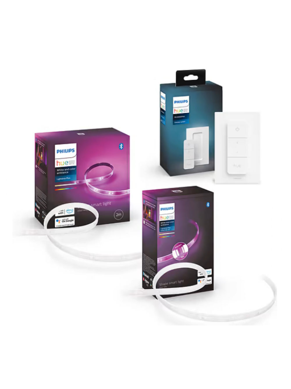Световая полоса Philips Hue LightStrips Plus, стартовый комплект длиной 2 м, удлинитель длиной 1 м и комплект с диммерным переключателем Hue