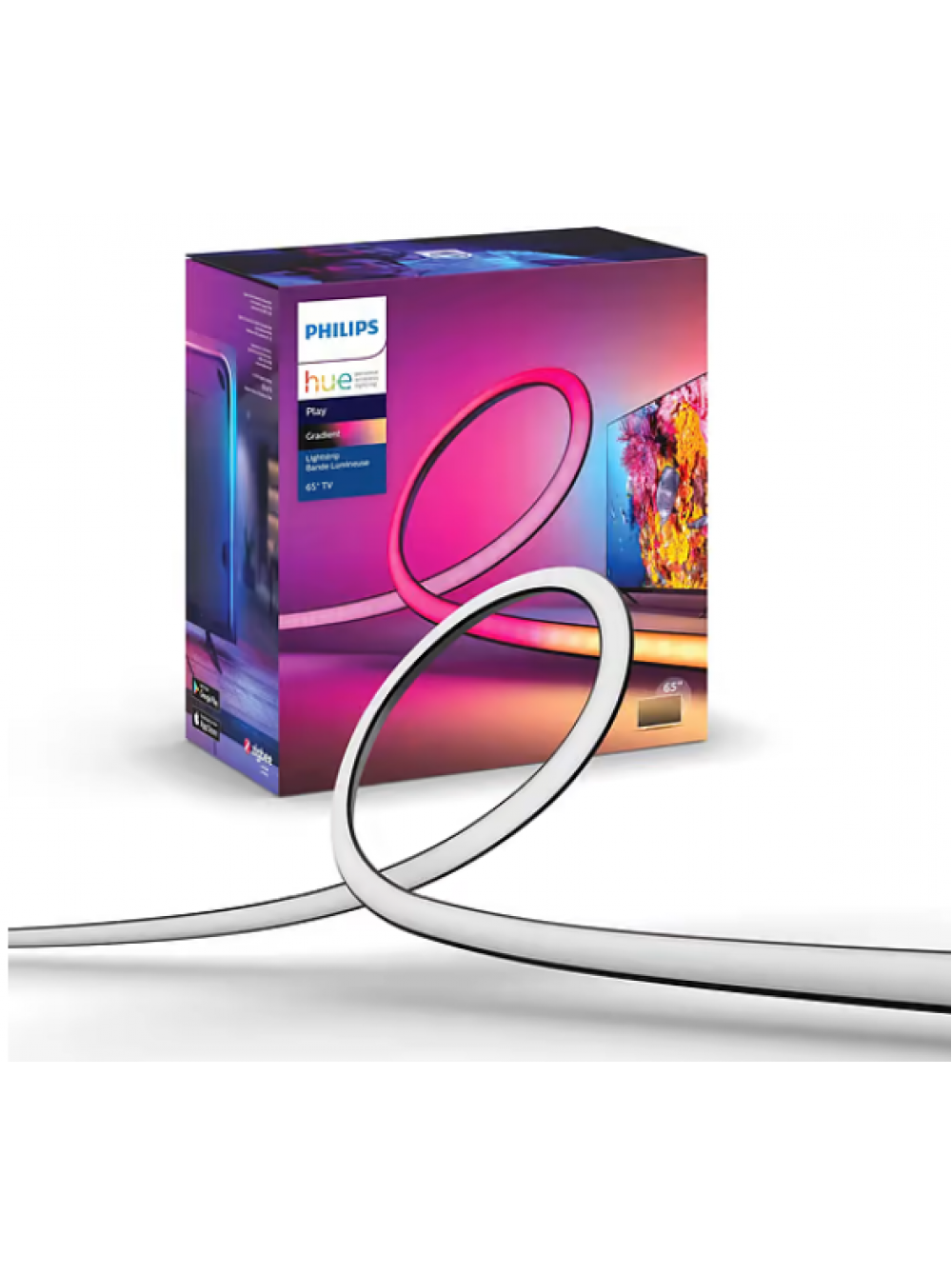 Hue Lightstrip Gradient выводит объемное освещение на совершенно новый уровень! Эта лента плавно смешивает одновременно несколько различных цветовых тонов, воспроизводя тона, видимые на экране. С помощью этого градиента Hue Lightstrip вы создаете непревзойденное захватывающее развлечение в комнате. Расширьте возможности просмотра телевизора на всю комнату, подключив градиентную полоску Hue Lightstrip к блоку синхронизации Hue HDMI и мосту Hue. Hue Lightstrip Gradient преображает все пространство и создает максимально полный спектр развлечений.