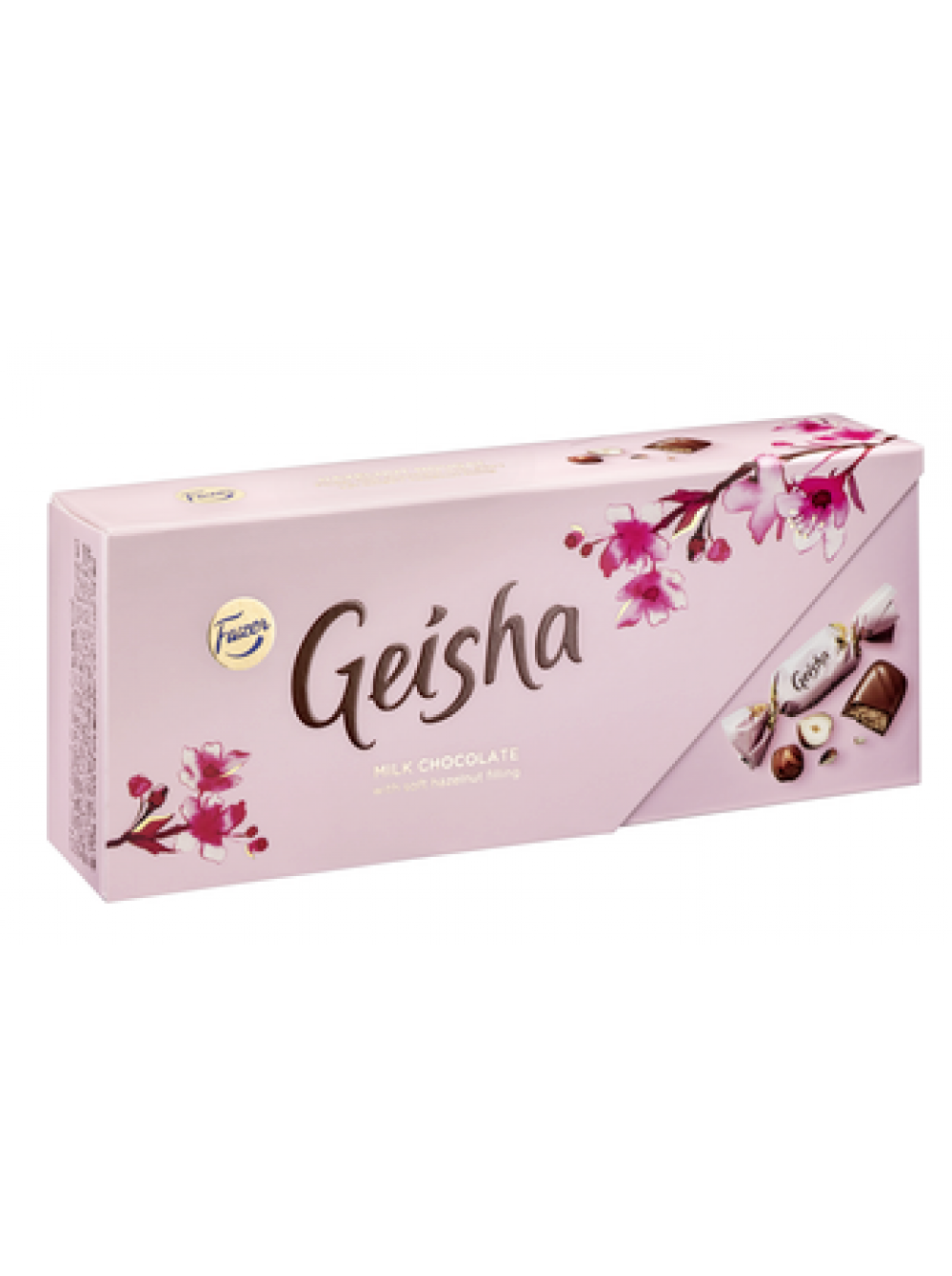 Вкусные конфеты Гейша, в которых мягкий молочный шоколад скрывает хрустящую начинку из фундука и нуги. И самое главное, все вкусные шоколадные конфеты Fazer производятся из какао, произведенного на 100 % ответственным образом. Вдохновитесь миром и подарите друзьям время вместе. Красивая коробка конфет – это еще и подарок, который запомнится.