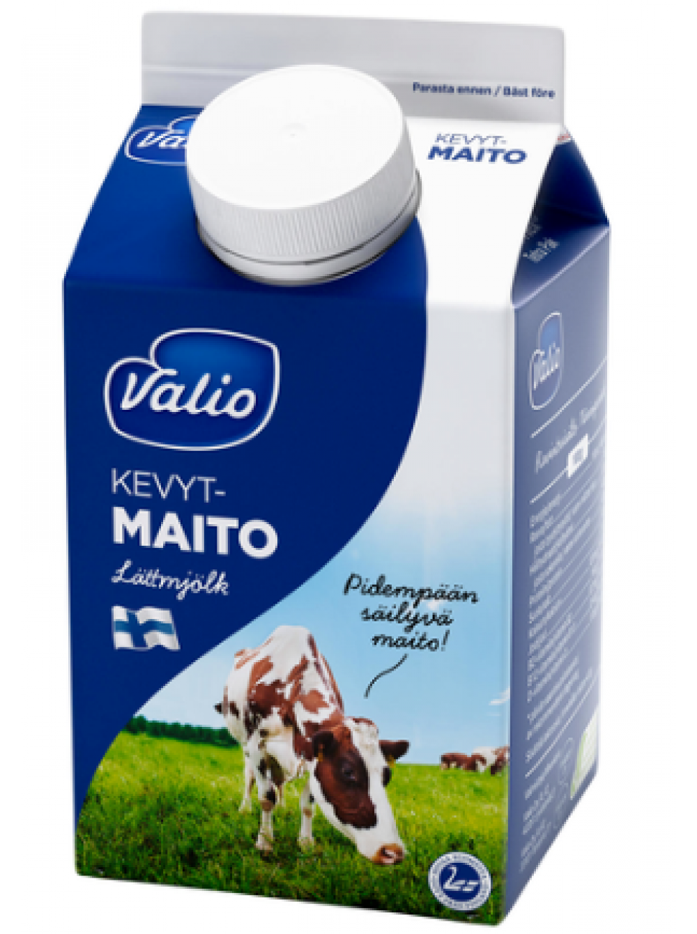 Легкое молоко Valio - это универсальный и полезный пищевой напиток. Молоко от природы богато кальцием, витаминами группы В и белками хорошего качества. Добавленный витамин D улучшает усвоение кальция. Жирность обезжиренного молока Valio составляет 1,5%.