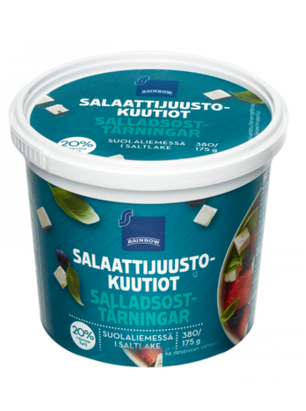 Кубики салатного сыра Rainbow Salaattijuustokuutiot Suolavedessä 20% 370/175г