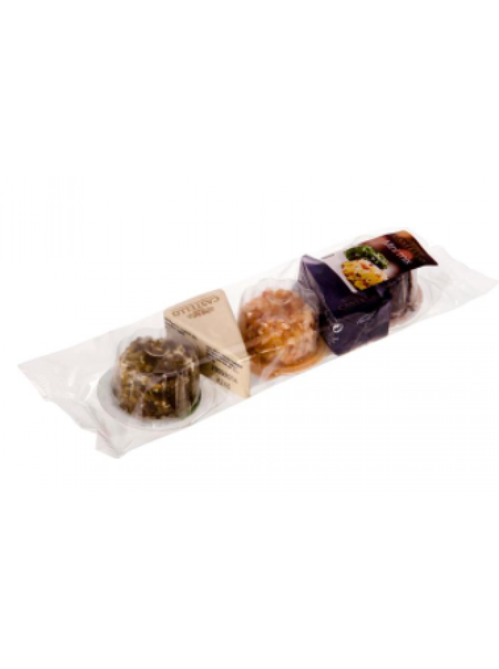 Сырное ассорти 5 шт. x 20 г содержит: 2 шт. голубого сыра Castello, свежие сыры ананас/миндаль, лайм/кокос и черный перец. Голубой сыр: пастеризованное МОЛОКО и СЛИВКИ, соль, закваска, микробиологический сычужный фермент, культура голубой плесени. Свежий сыр с черным перцем: пастеризованное МОЛОКО и СЛИВКИ, черный перец 4,7%, МОЛОЧНЫЙ БЕЛОК, соль, желатин, стабилизатор (порошок плодов рожкового дерева), консервант (сорбиновая кислота), белый перец, закваска. Свежий сыр с лаймом и кокосом: пастеризованное МОЛОКО и СЛИВКИ, сахар, вода, кокос 2,7%, концентрированный сок лайма 1,2%, натуральный ароматизатор лайма, регулятор кислотности (цитрат натрия), желатин, МОЛОЧНЫЙ БЕЛОК, соль, стабилизатор (порошок плодов рожкового дерева), консервант (сорбиновая кислота), закваска. Ананасовый сливочный сыр: Пастеризованное МОЛОКО и СЛИВКИ, смесь МИНДАЛЬ-папайя (МИНДАЛЬ 8%, засахаренная папайя (папайя, тростниковый сахар, рисовая мука, регулятор кислотности (лимонная кислота)), ананас 7,5%, концентрированный ананасовый сок 4,6%, сахар, МОЛОЧНЫЙ БЕЛОК, желатин, соль, стабилизатор (камедь рожкового дерева), консервант (сорбиновая кислота), цитрусовые волокна, закваска.