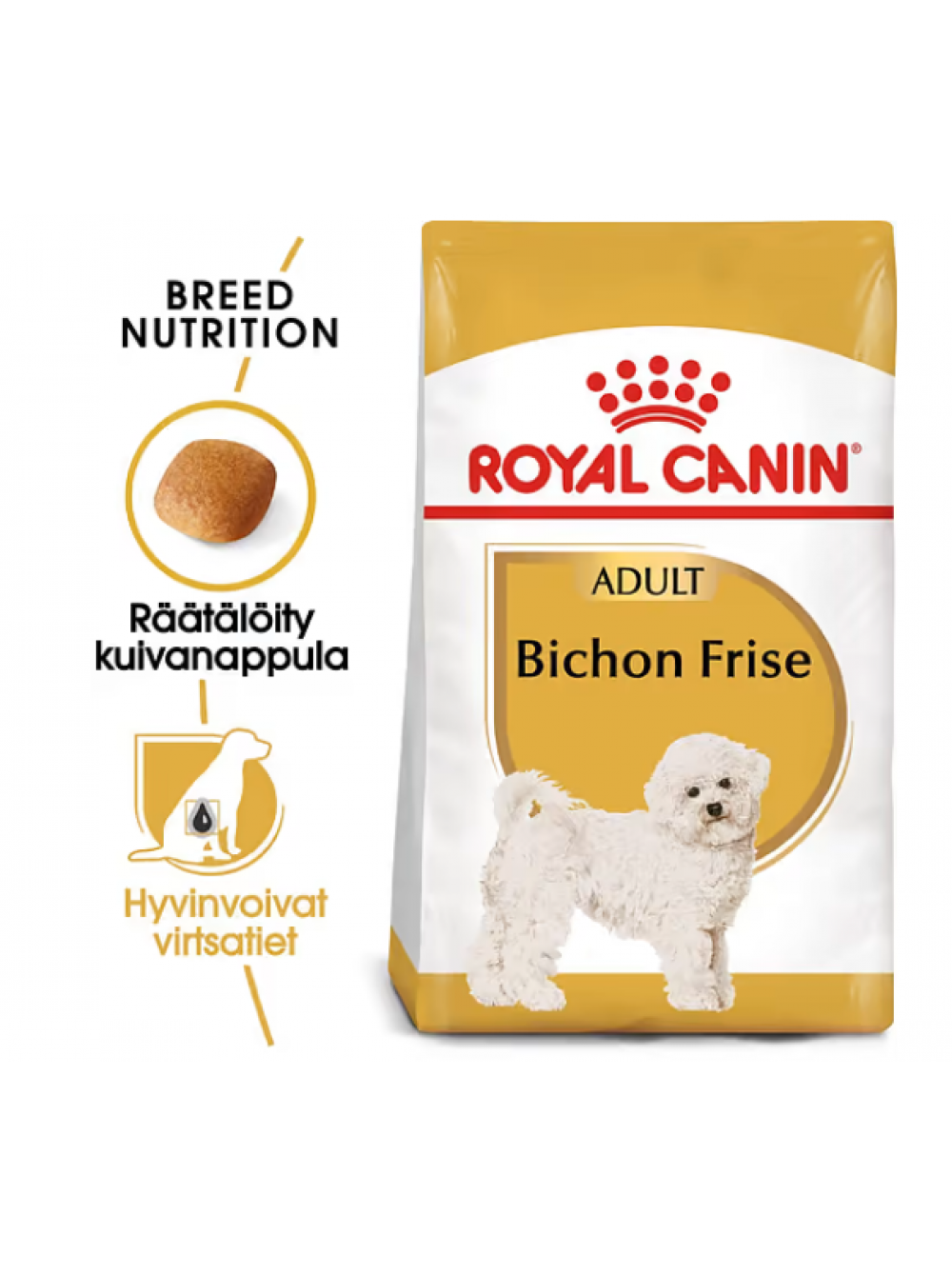Royal Canin Bichon Frize Adult — вкусный полноценный корм, разработанный специально для бишон фризе. Благодаря своему размеру корма Royal Canin Bichon Frize Adult идеально подходят для маленького рта. Деталь предназначена для собак старше 10 месяцев. Royal Canin Bichon Frize Adult входит в серию здорового питания Royal Canin Breed. В серии вы найдете сухой корм, который подойдет именно вашей собаке.