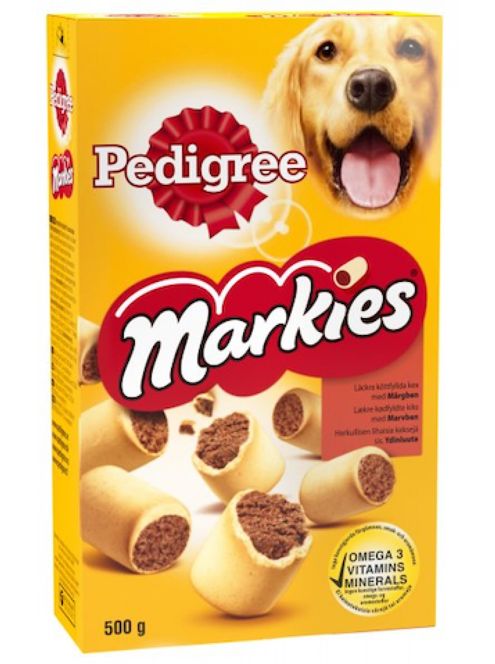 Хрустящее печенье имеет вкусное мясистое ядро. Если ваша собака заслуживает чего-то особенного, вознаградите ее печеньем Markies. Они являются одними из многих популярных печенья и деликатесов Pedigree.