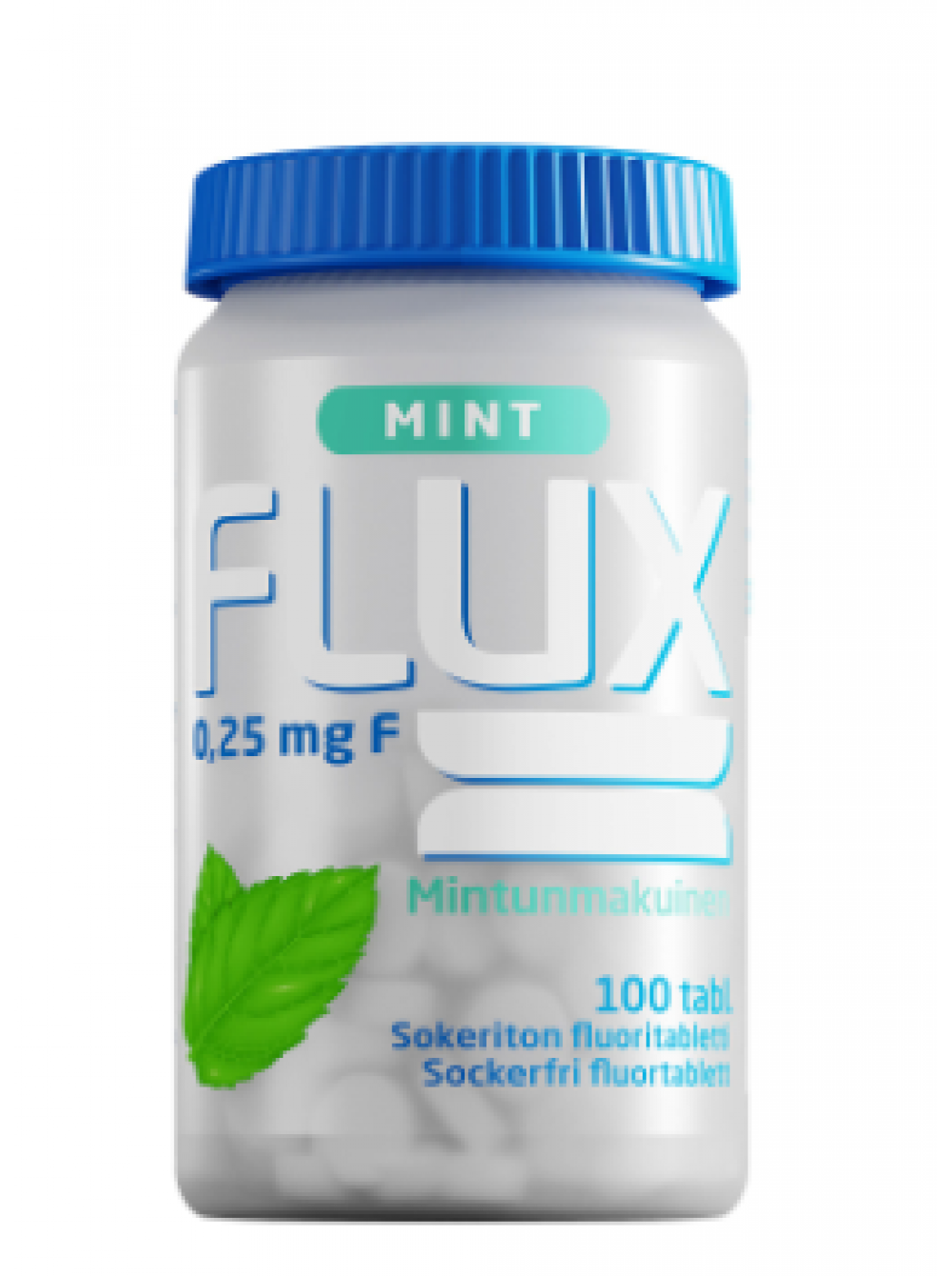 Мятные таблетки Flux Mint содержат фторид (0,25 мг F), который помогает поддерживать минерализацию зубов, то есть уменьшает кариес, предотвращая минерализацию зубной эмали. Фторидная добавка подходит, например, для пользователей-ортодонтов, частичных зубных протезов, сухих струпьев или лиц с повышенным риском развития кариеса. Пищевая добавка.